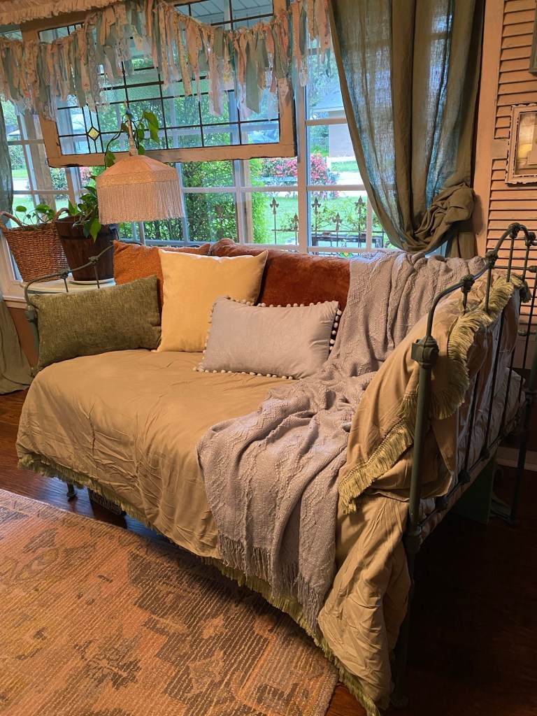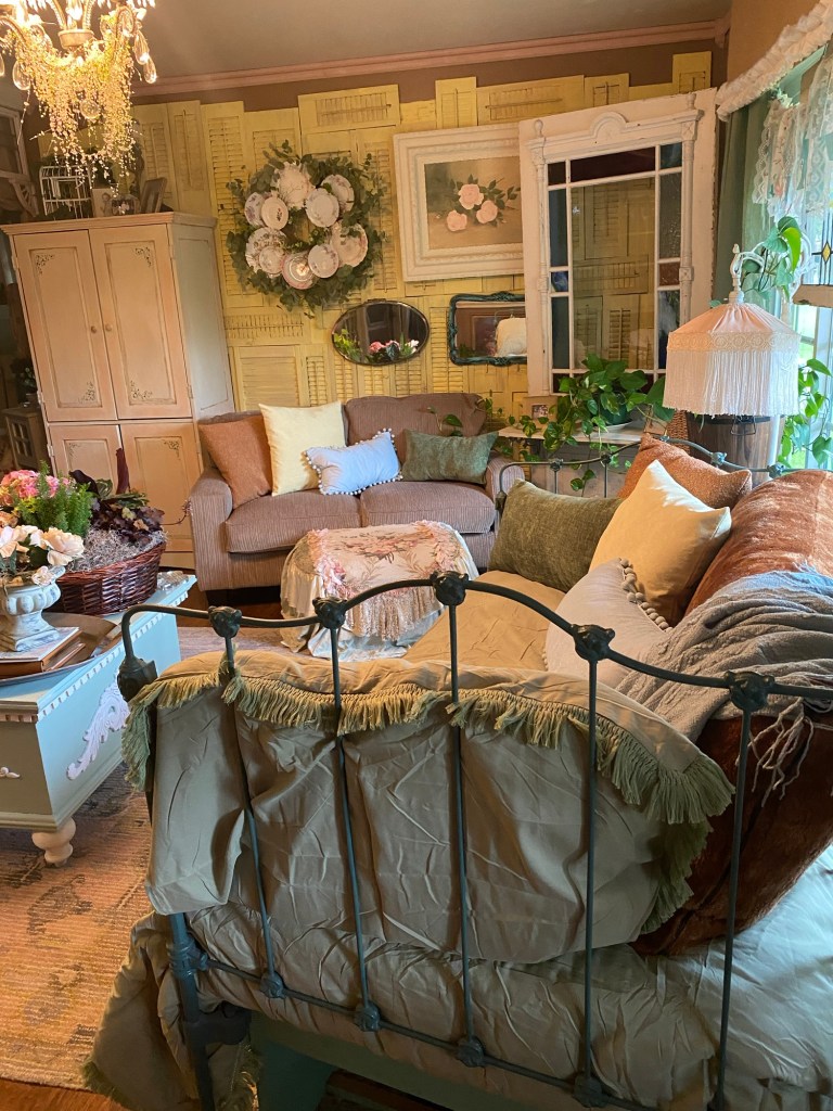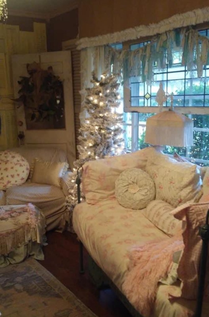The decor before the makeover was very romantic shabby chic which I still love, but the richness of the palomino colors is very warm and cozy. Here is the before picture: