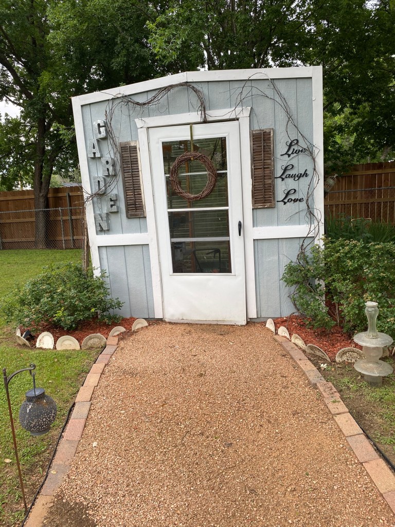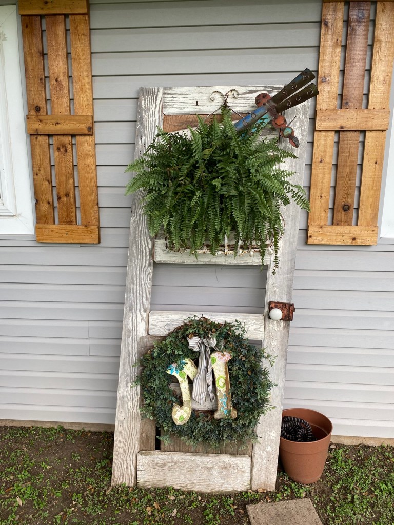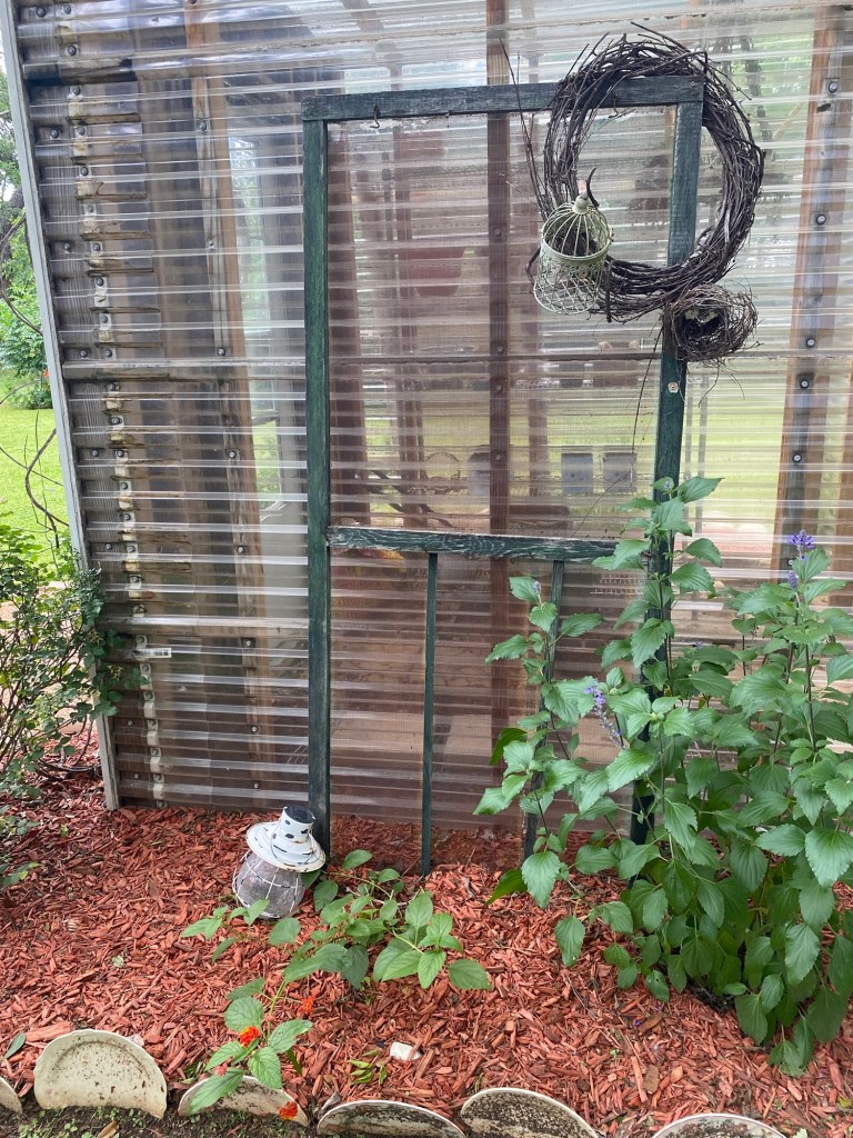 I live in a small cottage of about 1400 square feet, so creating outdoor spaces is a must for me. I always look forward to spring and summer so I can bring to life something that actually gives me life. Research has shown that being outside and getting your hands and feet in the soil can bring many health benefits including the introduction of beneficial microbes that improve the immune system. The great thing is that it can be done on a budget!! It’s good for your health and your pocketbook! First, I will show you three items that I found in my alley…… two screen doors and one antique wooden door. I never leave treasures like that behind as I can always find a use for them somewhere outdoors.
